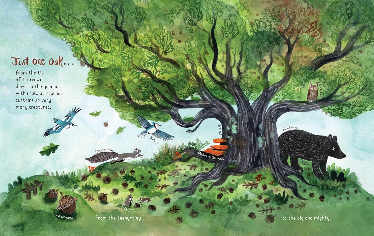 One Author that hits high marks for her book-loving the wild is Maria Gianferrari. Just One Oak pays tribute to all one Oak can be and do and see. A shining tribute to all a tree gifts us.